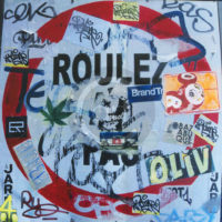 Her favourite material is paper. First of all, she prints on it, afterwards she transfers the print to canvas and then Frida covers parts of the canvas with all different kind of papers.